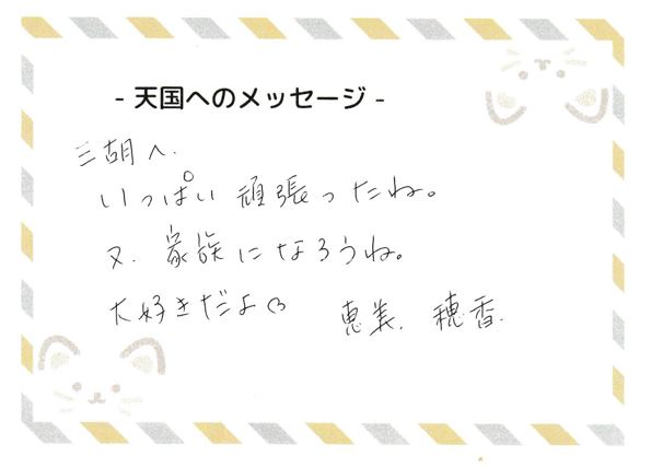 三胡へいっぱい 頑張ったね。又、家族になろうね。大好きだよ♡恵美. 穂香.