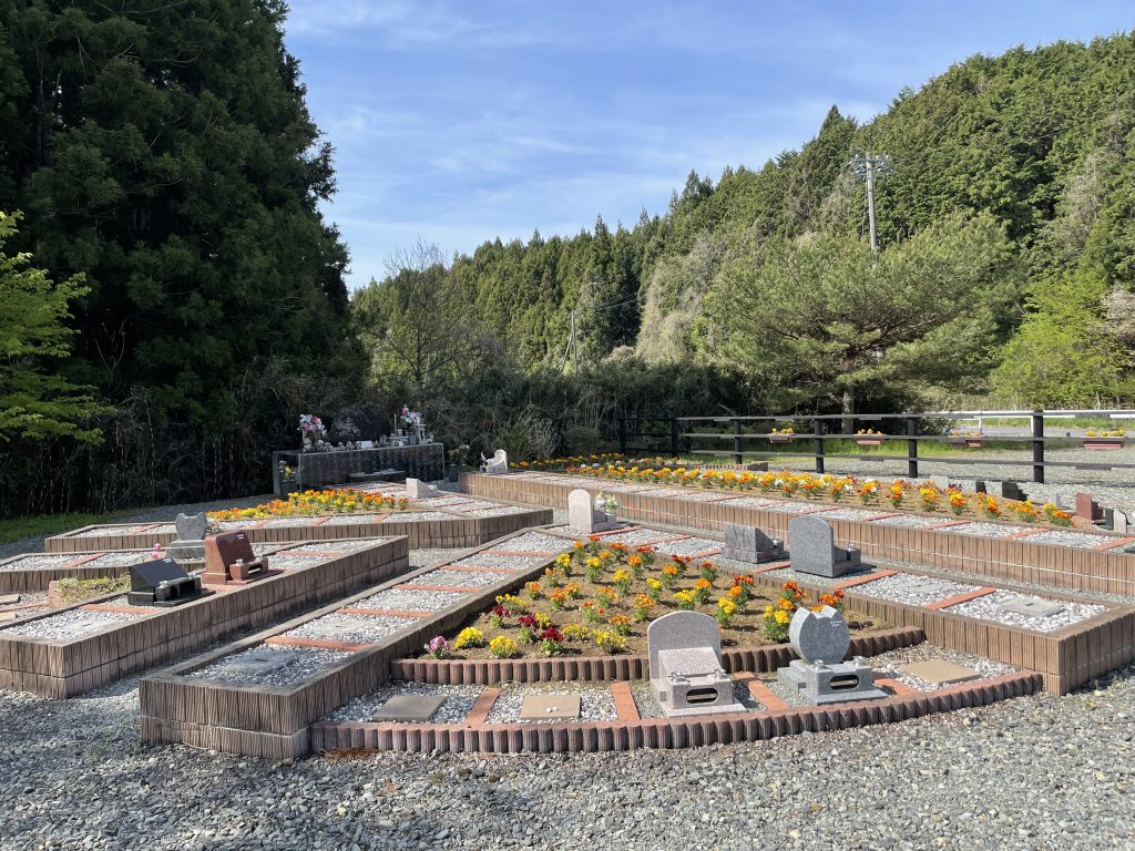 ペット霊園あおぞらの屋外には、個別墓地(全80区画) と 共同墓地 がございます。花壇を囲むように個別墓地が並び、正面には共同でご遺骨を納める共同墓地を配置しております。季節の花々に囲まれた、自然豊かな環境です🌿